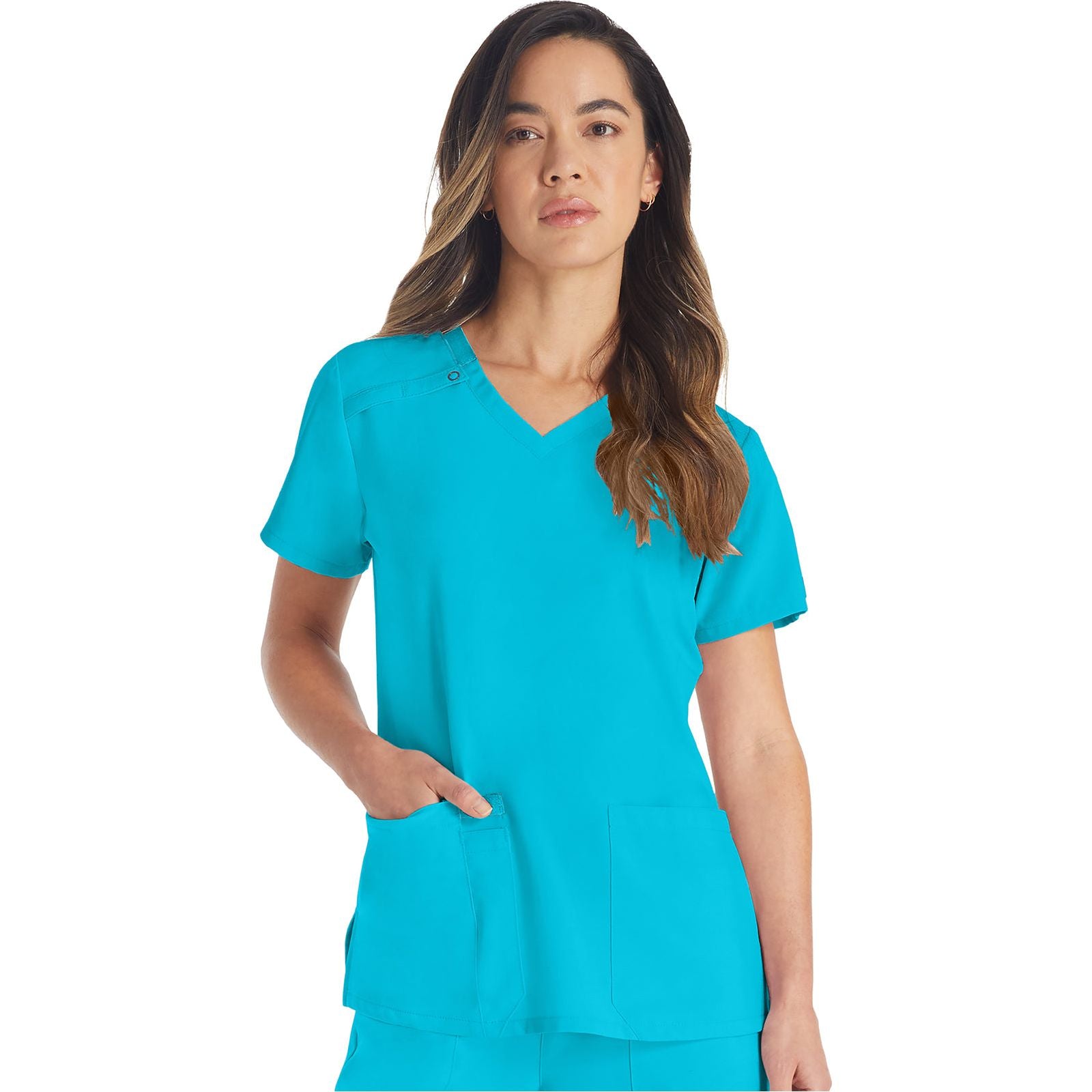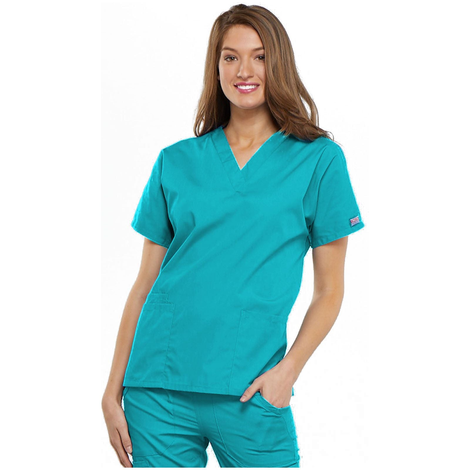 A Traditional fit, dolman sleeve, V-neck top with side seam vents, two patch pockets and a cell phone pocket. Center back length: 26 1/2"