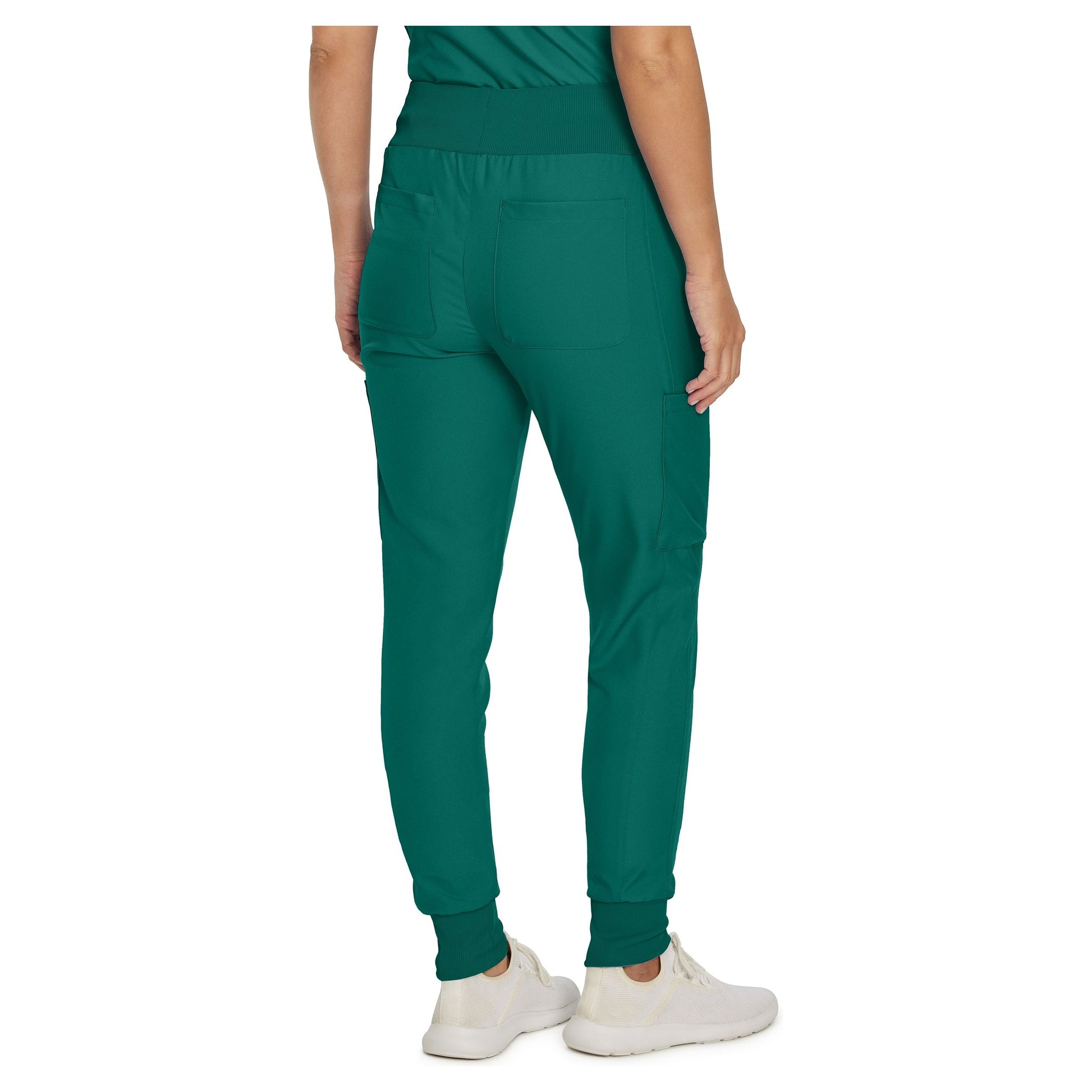 These women's mid-rise jogger scrub pants feature a stretchy rib-knit waistband with an internal drawstring for a clean look with an adjustable fit. Soft, comfortable rib-knit leg cuffs and hidden rib-knit panels down the inseam of the pant legs allows for ample freedom of movement. Our modern tailored fit flatters your shape, while our moisture-wicking super stretch fabric provides the comfort and flexibility your work requires throughout the day. Seven pockets, including a secure zip cargo pocket keep your essentials within easy reach.