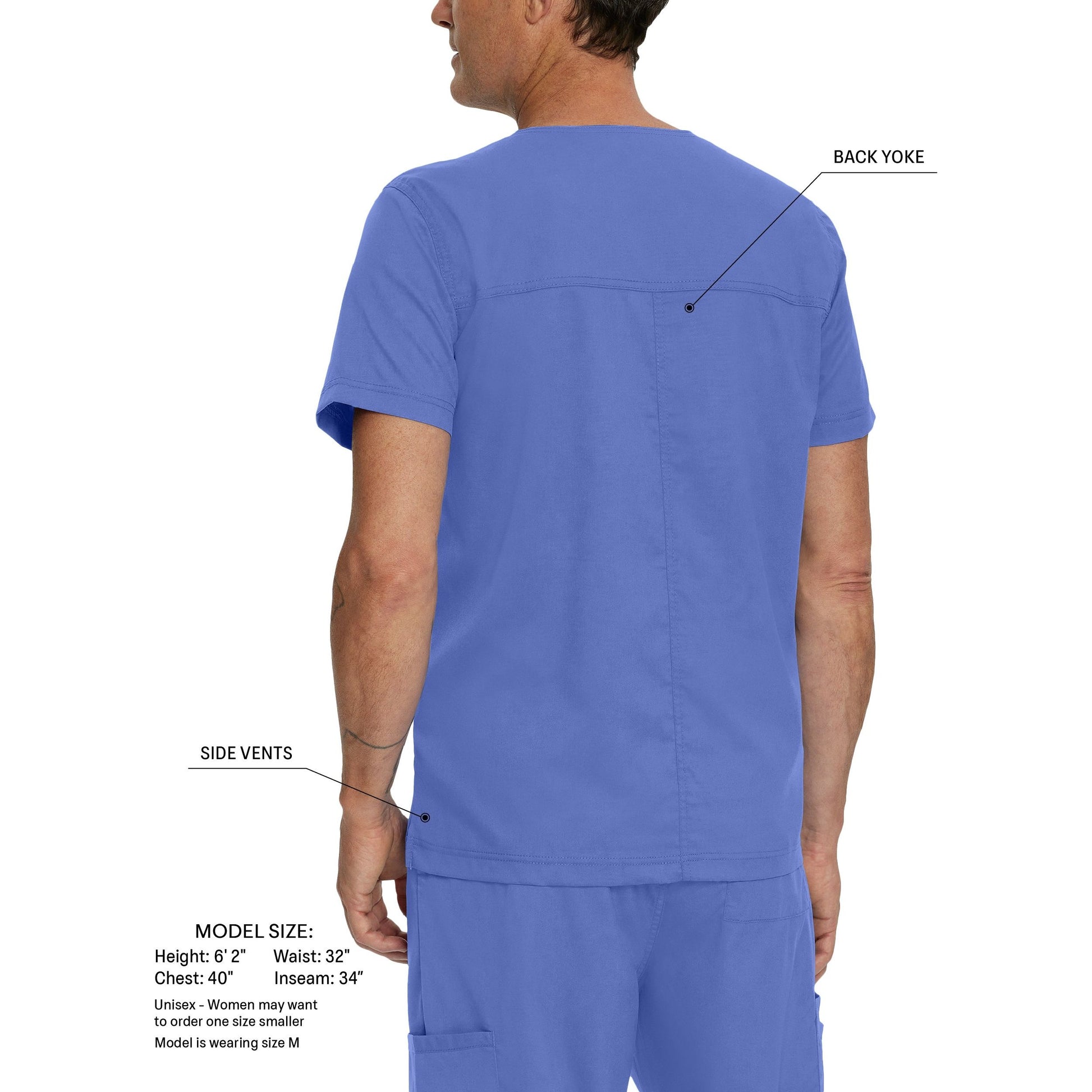 We design quality medical scrubs and medical uniforms with universal appeal. Our crossover V-neck unisex scrub top has back yoke detailing for a flattering shape and side vents for extra ease of movement. With one double chest pocket with an accessory loop, this top has simple but practical storage and looks great tucked in or left loose. Our modern tailored fit is tapered to enhance your shape without constricting your movement, and our 2-way comfort stretch helps give you added flexibility required of your work wear. Whether it's Landau scrubs for men or scrubs for women, we're known for producing scrubs that work as hard as you do!