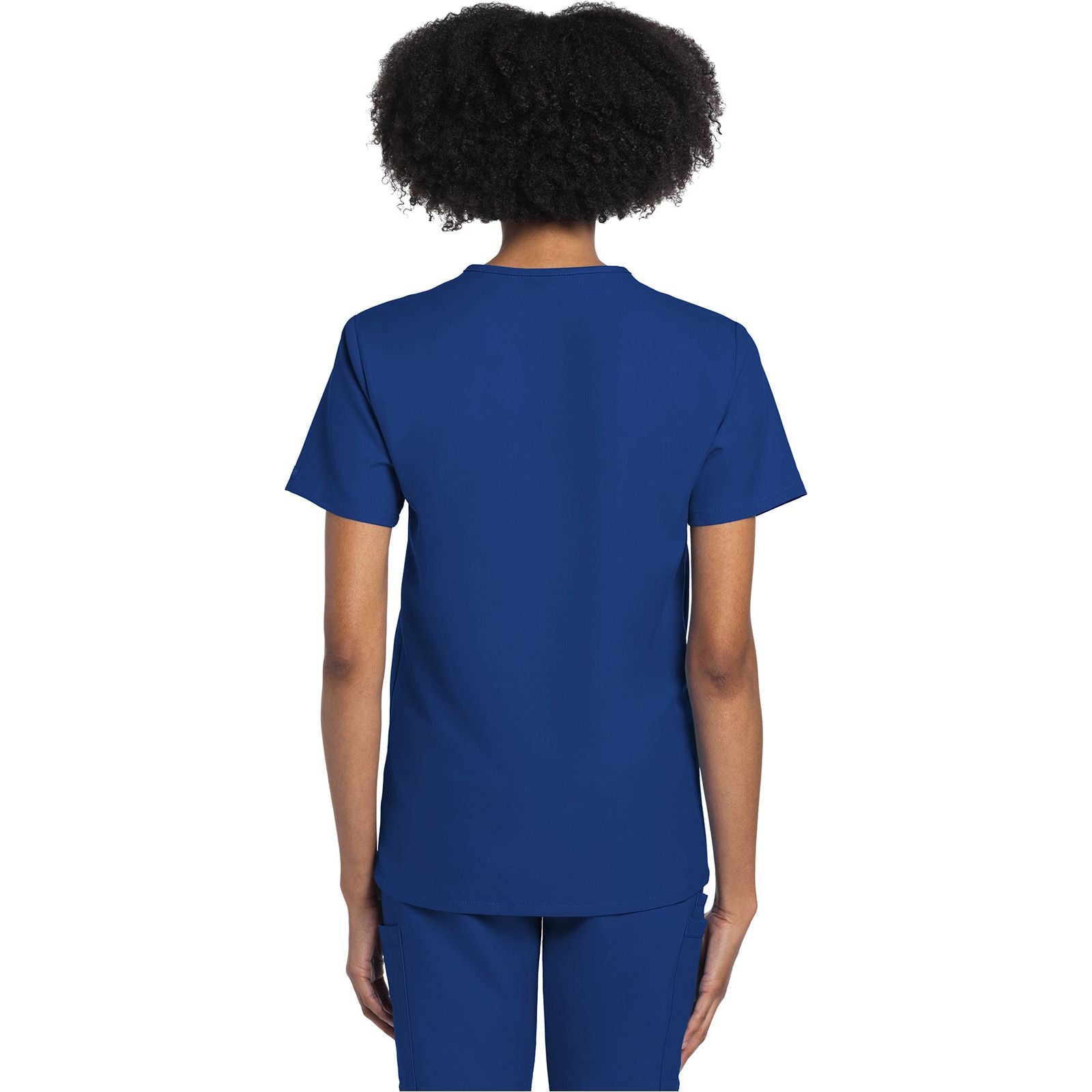 This Unisex Traditional fit V-neck top has one chest pocket and two patch pockets. Side vents. Center back length 29".
